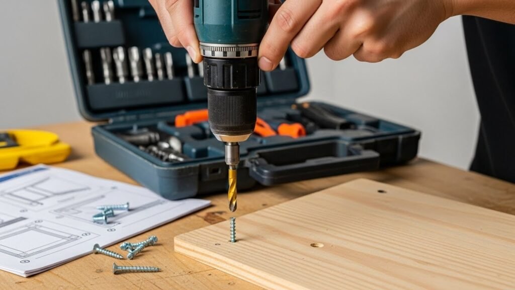 A parafusadeira costuma brilhar em tarefas com muitos parafusos e pouca variação de material. Montagem de móveis, fixação de dobradiças, prateleiras em madeira e pequenas manutenções entram aqui.