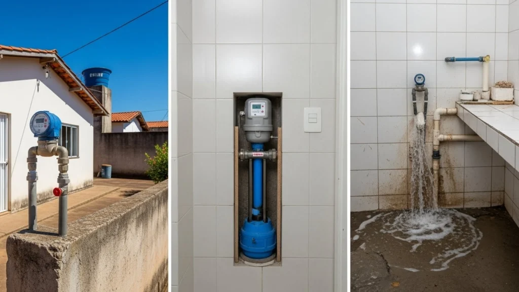 Em casa com caixa d’água, a pressão no ponto costuma ser mais estável e ligada à altura do reservatório. Mesmo assim, pontos externos e pouco usados tendem a endurecer, especialmente quando ficam expostos a poeira e umidade.